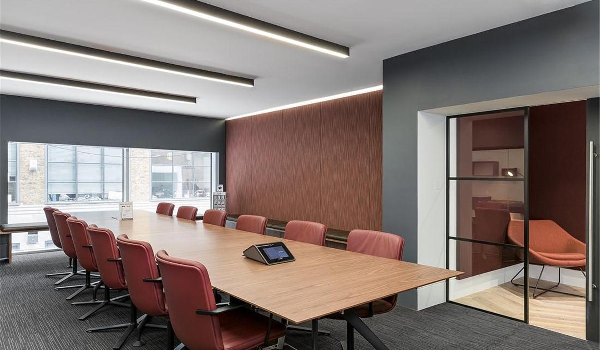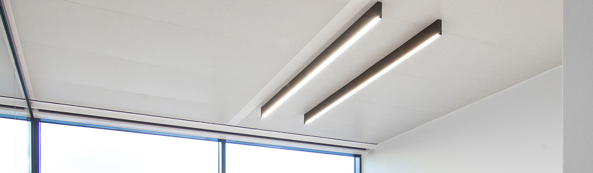 This pendant lamp has been designed for use in the office, and has a suitably functional and